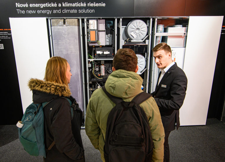 Tepelné čerpadlo aroTHERM plus (v popredí vľavo) počas 22. ročníka Medzinárodného odborného veľtrhu vykurovacej, ventilačnej, klimatizačnej, meracej, regulačnej, sanitárnej a ekologickej techniky Aquatherm Nitra v národnom výstavisku Agrokomplex v Nitre. Nitra, 7. február 2023. Foto: SITA/Martin Havran