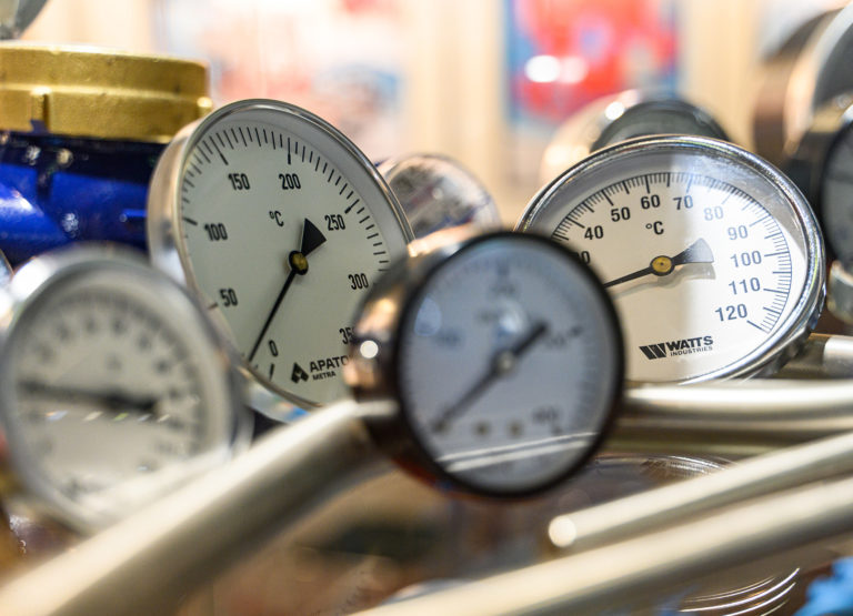 Tlakomery počas 22. ročníka Medzinárodného odborného veľtrhu vykurovacej, ventilačnej, klimatizačnej, meracej, regulačnej, sanitárnej a ekologickej techniky Aquatherm Nitra v národnom výstavisku Agrokomplex v Nitre. Nitra, 7. február 2023. Foto: SITA/Martin Havran