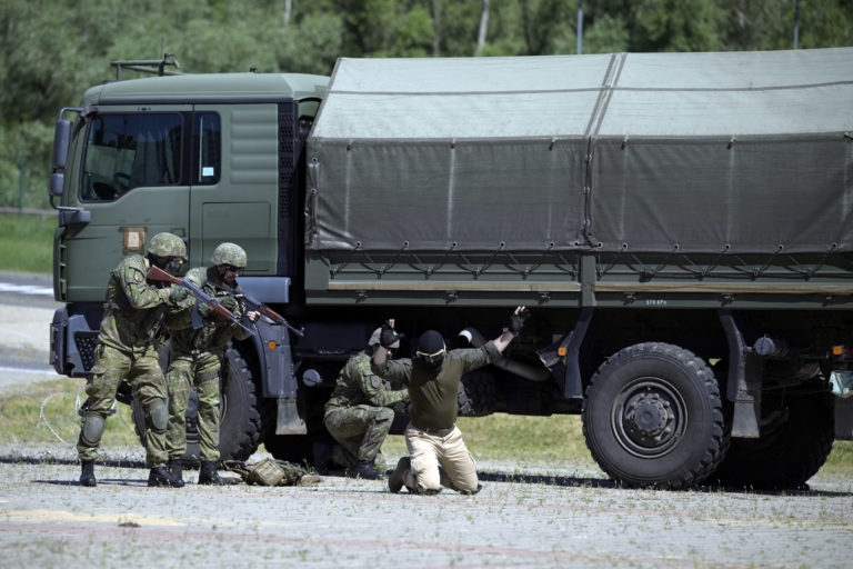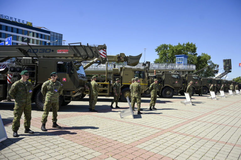 Vystavená technika počas otvorenia medzinárodého veľtrhu obrannej a bezpečnostnej techniky IDEB Defence&Security v bratislavskej Inchebe. Bratislava, 14. máj 2024. Foto: SITA/Milan Illík