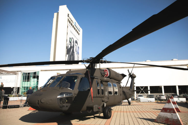 Helikoptéra UH-60M Black Hawk počas 10. ročníka veľtrhu obrannej a bezpečnostnej techniky IDEB Defence&Security na Incheba Expo v Bratislave. Bratislava, 3. október 2023. Foto: SITA/Diana Černak