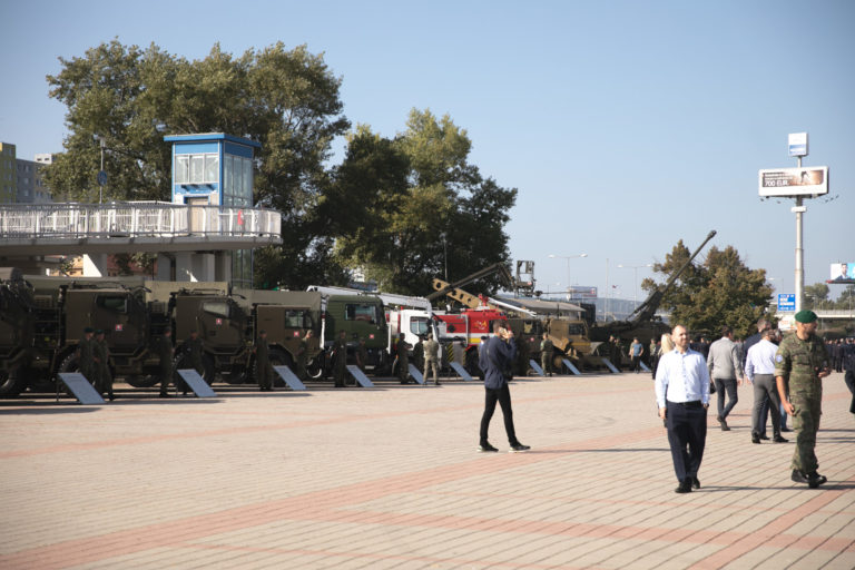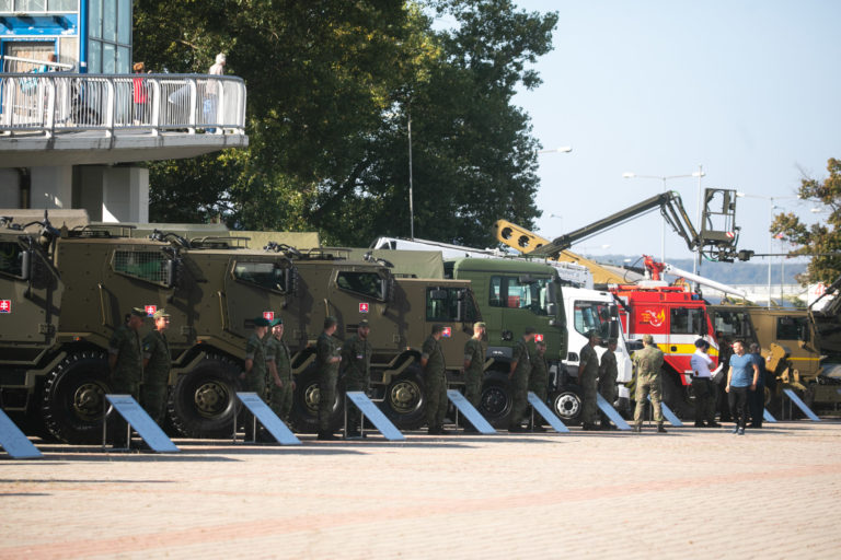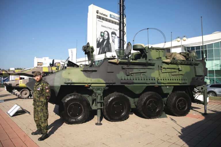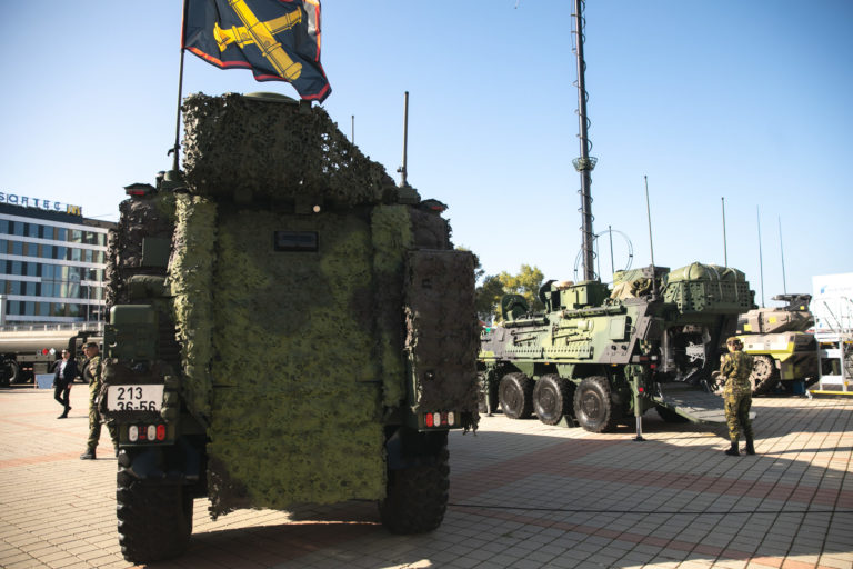 Obrnené vozidlá počas 10. ročníka veľtrhu obrannej a bezpečnostnej techniky IDEB Defence&Security na Incheba Expo v Bratislave. Bratislava, 3. október 2023. Foto: SITA/Diana Černak