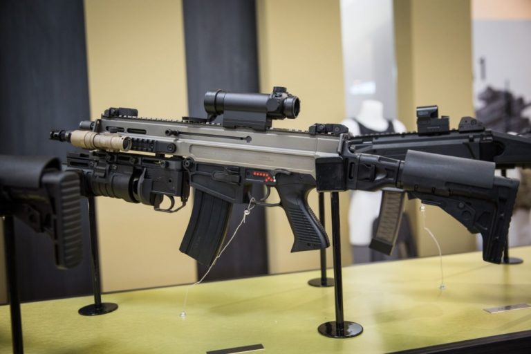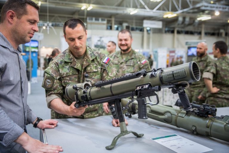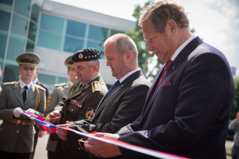 Minister obrany Peter Gajdoš (druhý sprava) počas otvorenia 6. ročníka veľtrhu obrannej techniky IDEB 2016. Bratislava, 10. máj 2016. Foto: SITA/Marko Erd