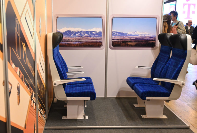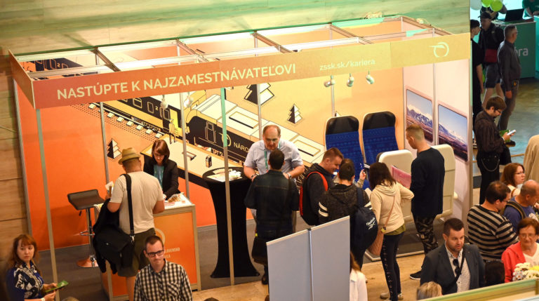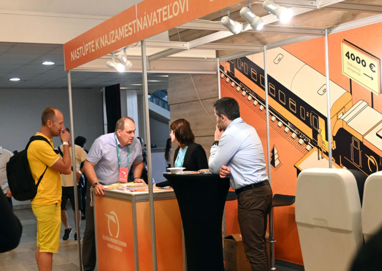 Stánok Železničnej spoločnosti Slovensko (ZSSK) počas veľtrhu práce Kariéra EXPO Košice v Spoločenskom pavilóne v Košiciach. Košice, 12. jún 2024. Foto: SITA/Viktor Zamborský