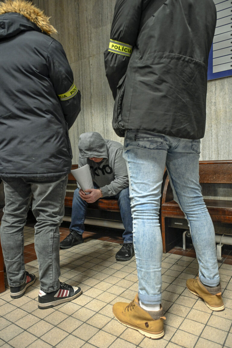 Ivo P. (uprostred) počas odchodu v rámci verejného zasadnutia s Ivom P. o obnove konania v kauze únosu a intoxikácie študentky Sone, na Mestskom súde v Bratislave. Bratislava, 5. december 2024. Foto: SITA/Milan Illík.