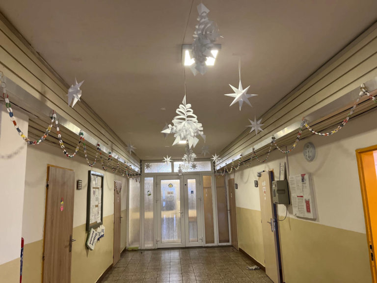 Vianočná výzdoba na chodbe počas vianočného obdobia v Ústave na výkon väzby a Ústave na výkon trestu odňatia slobody. Bratislava, 23. december 2021. Foto: SITA/ZVJS.