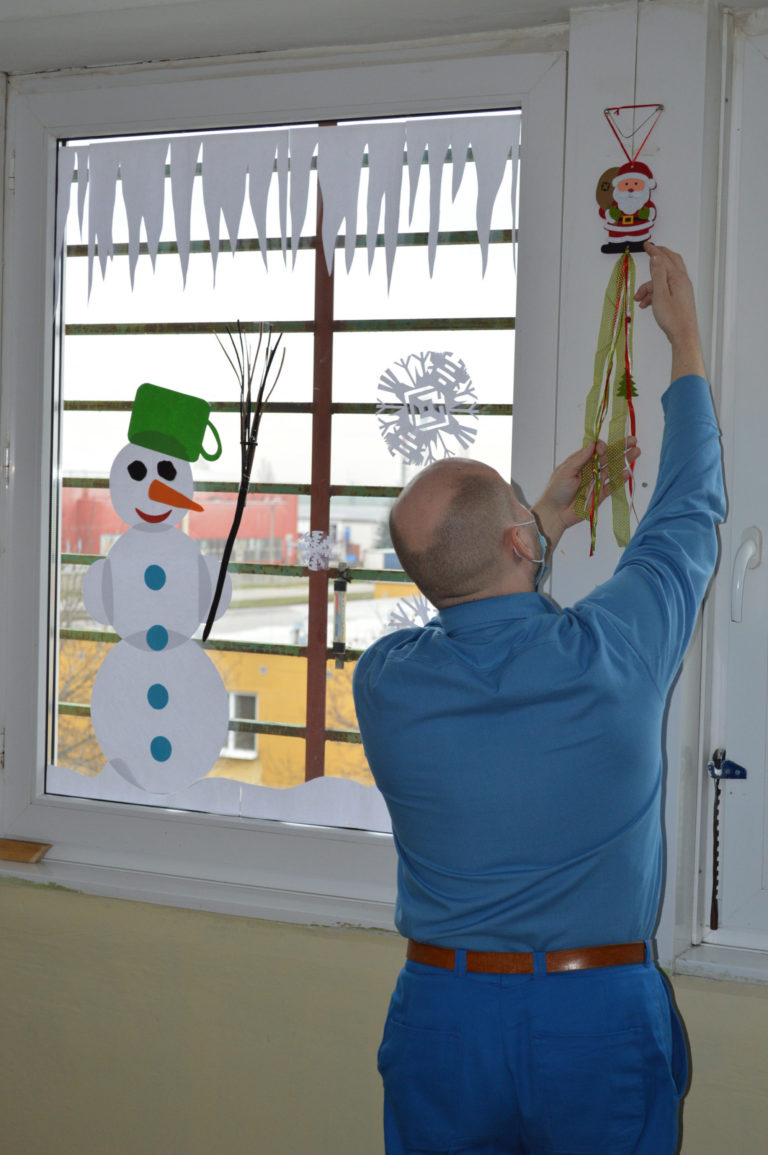 Odsúdený vešia ozdoby počas vianočného obdobia v Ústave na výkon väzby a Ústave na výkon trestu odňatia slobody. Bratislava, 23. december 2021. Foto: SITA/ZVJS.