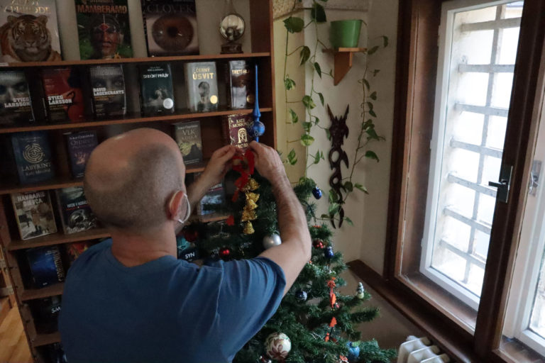 Odsúdený ozdobuje stromček počas vianočného obdobia v Ústave na výkon väzby a Ústave na výkon trestu odňatia slobody. Bratislava, 23. december 2021. Foto: SITA/ZVJS.