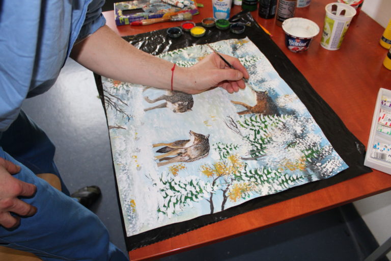 Odsúdený maľuje počas vianočného obdobia v Ústave na výkon väzby a Ústave na výkon trestu odňatia slobody. Bratislava, 23. december 2021. Foto: SITA/ZVJS.