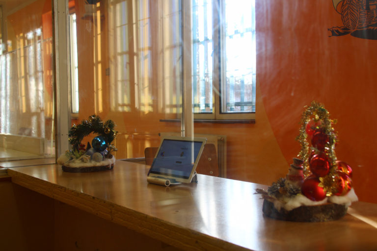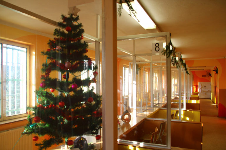 Miestnosť, v ktorej je umožnené telefonovať odsúdeným počas vianočného obdobia v Ústave na výkon väzby a Ústave na výkon trestu odňatia slobody. Bratislava, 23. december 2021. Foto: SITA/ZVJS.