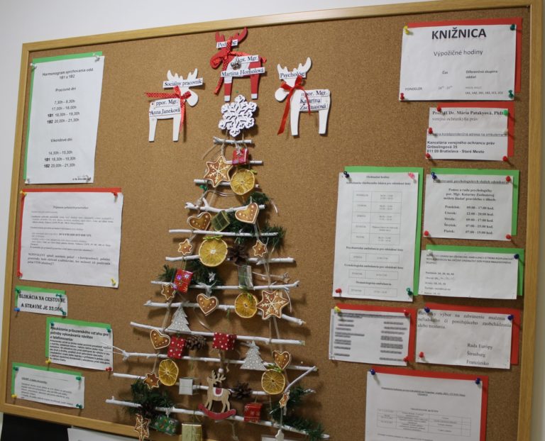 Nástenka v Ústave na výkon väzby a Ústave na výkon trestu odňatia slobody počas vianočného obdobia. Bratislava, 23. december 2021. Foto: SITA/ZVJS.