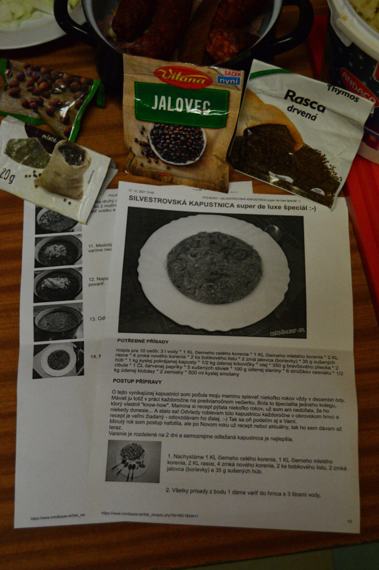Ingrediencie a recept na varenie kapustnice počas vianočného obdobia v Ústave na výkon väzby a Ústave na výkon trestu odňatia slobody v Levoči. Bratislava, 23. december 2021. Foto: SITA/ZVJS.
