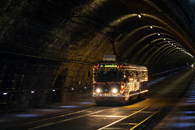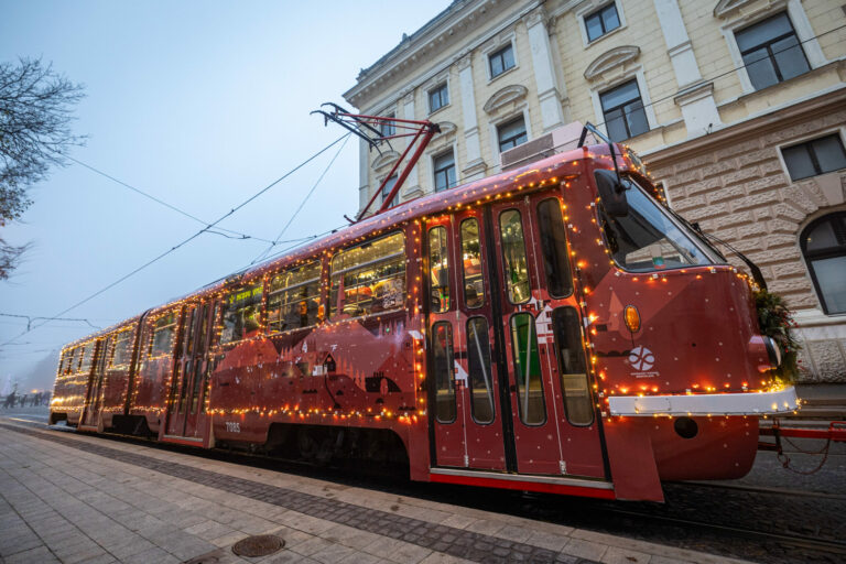Vianočná električka v uliciach hlavného mesta. Bratislava, 7. december 2024. Foto: SITA/Jana Birošová