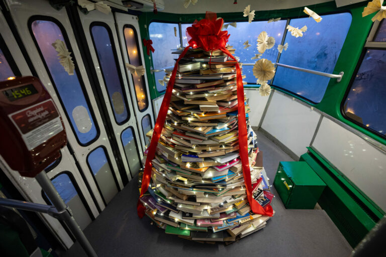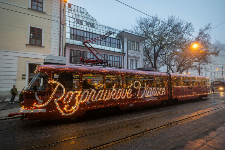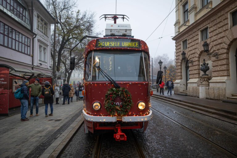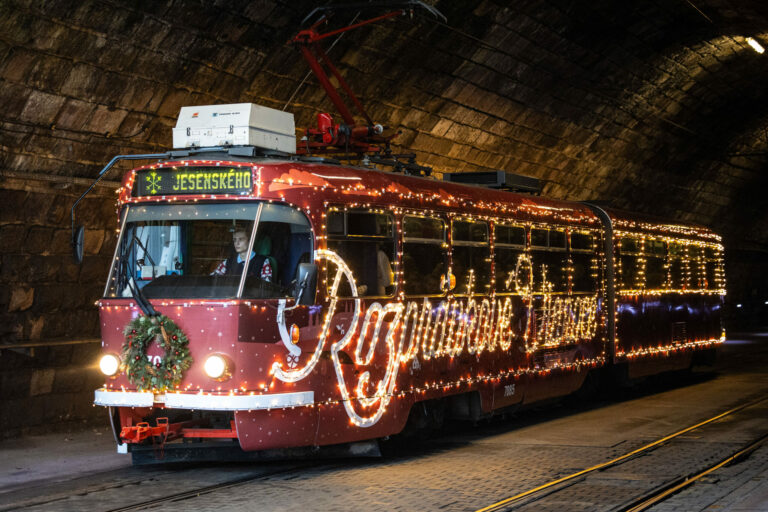 Ozdoby vo vianočnej električke v uliciach hlavného mesta. Bratislava, 7. december 2024. Foto: SITA/Jana Birošová