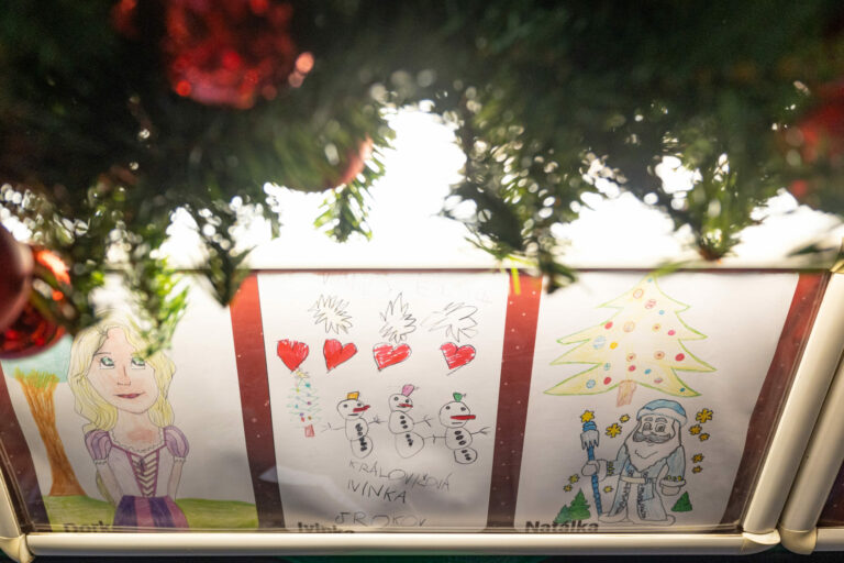 Detaily vo vianočnej električke v uliciach hlavného mesta. Bratislava, 7. december 2024. Foto: SITA/Jana Birošová