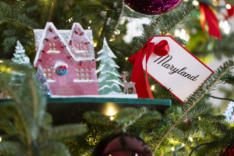 Vianočné ozdoby na jednom z vianočných stromčekov, ktoré zdobia Biely dom. Foto: SITA/AP