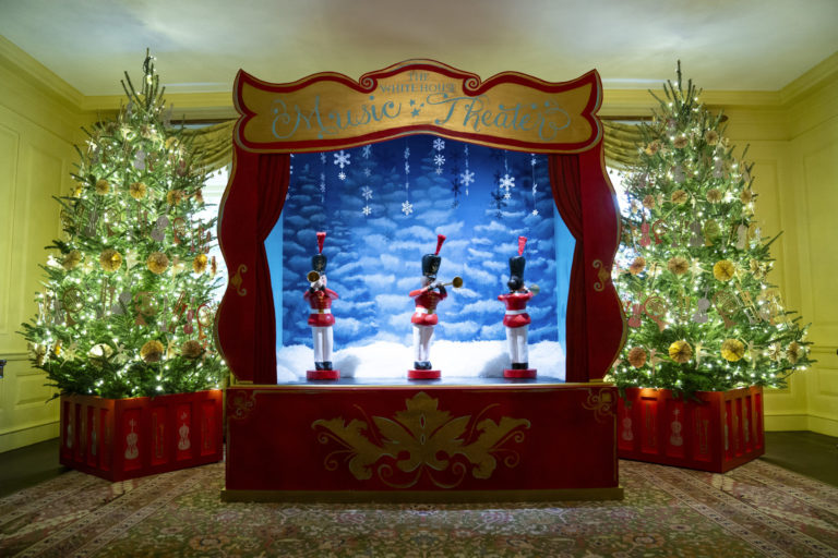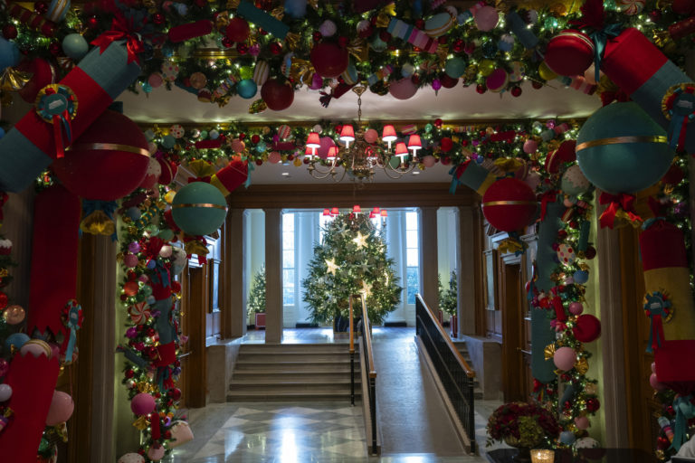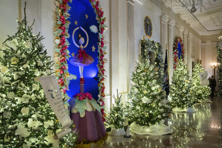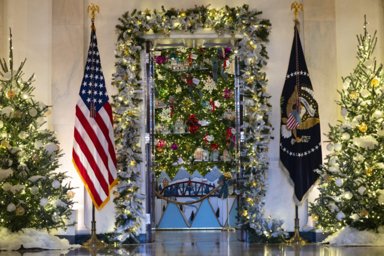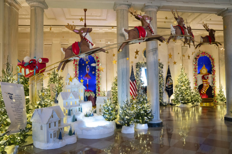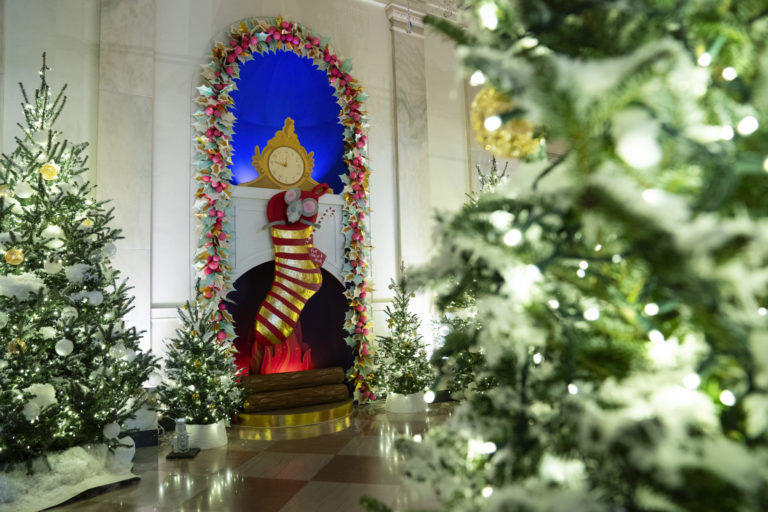 Vianočná výzdoba sa tento rok v Bielom dome niesla v duchu radosti, šťastia a zázrakov. Foto: SITA/AP