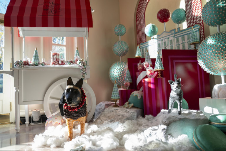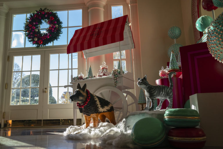 "Vianočný pes" a "vianočná mačka" sú tiež súčasťou výzdoby. Foto: SITA/AP