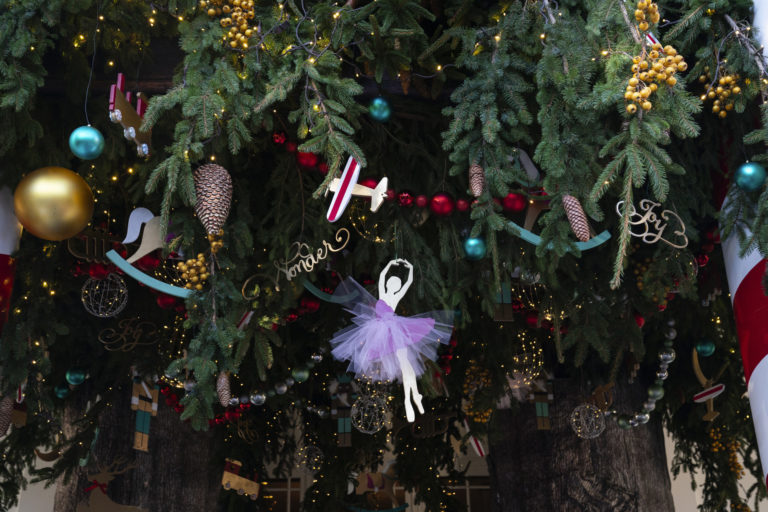 Vianočnú výzdobu okrem stromčekov a girlandy tvorí aj balerína. Foto: SITA/AP