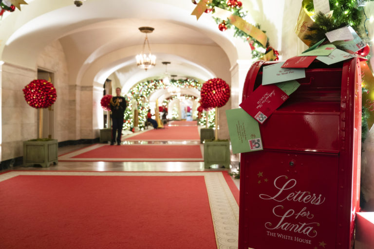 Interiér Bieleho domu tento rok zdobí aj schránka s listami pre Santa Clausa. Foto: SITA/AP