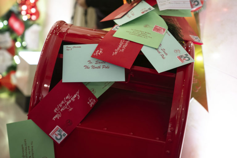 Vianočná dekorácia, ktorá má podobu listov pre Santa Clausa. Foto: SITA/AP
