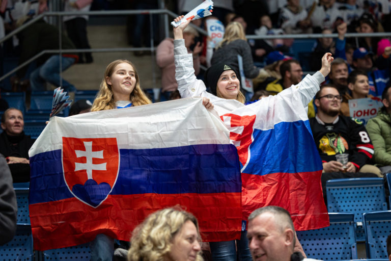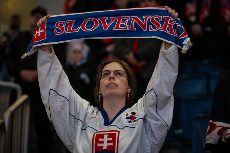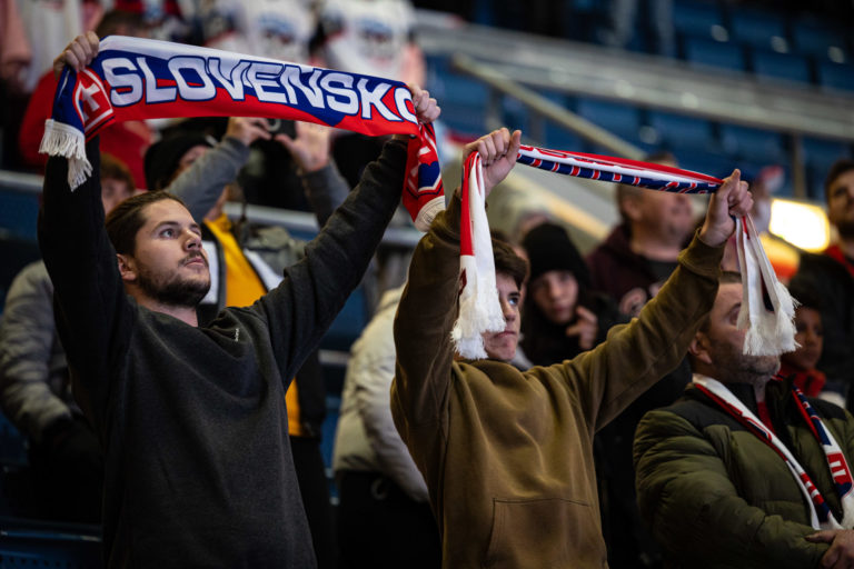 Fanúšikovia počas hokejového zápasu Vianočného Kaufland Cup medzi Slovensko - Nórsko. Bratislava, 13. december 2023. Foto: SITA/Jana Birošová