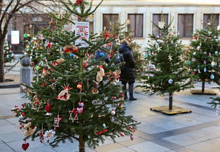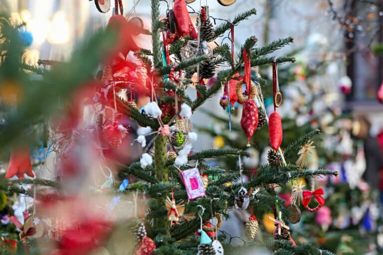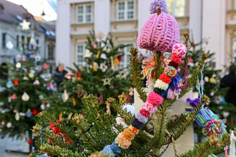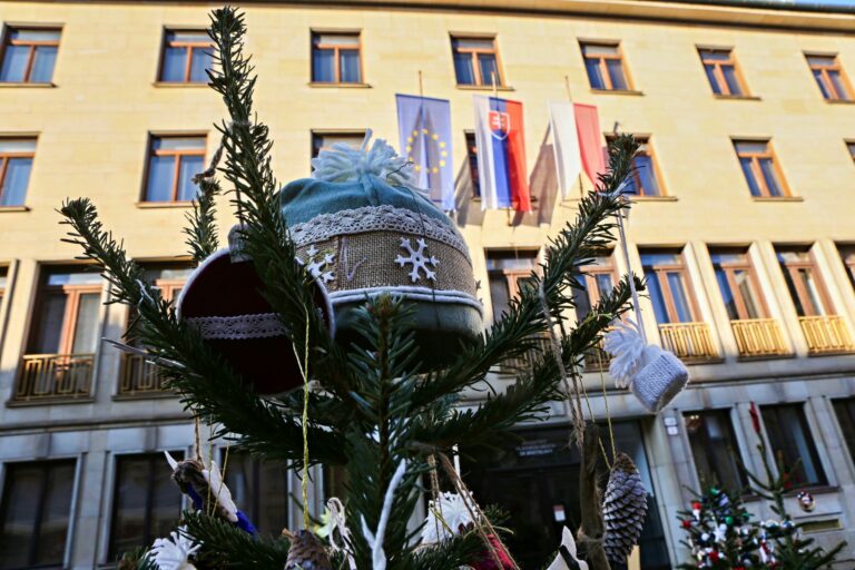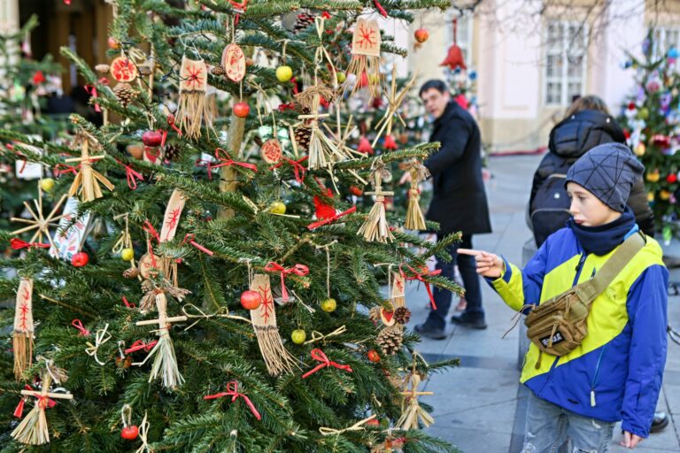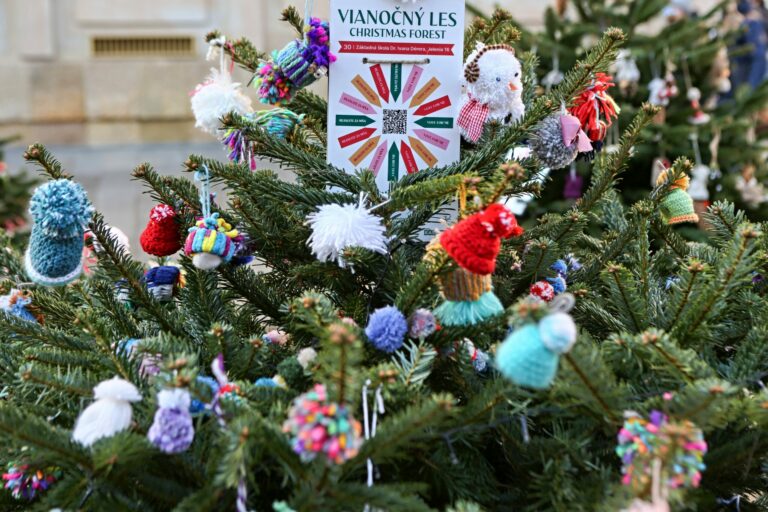 Ozdoby na vianočnom stromčeku v rámci súťažnej prehliadky vianočných stromčekov na Primaciálnom námestí. Bratislava. 1. december 2024. Foto: SITA/Tomáš Susko.