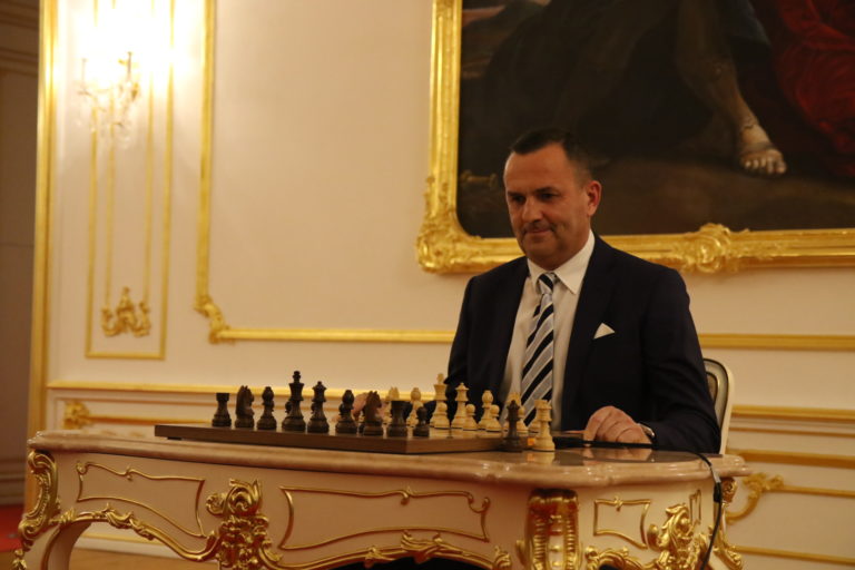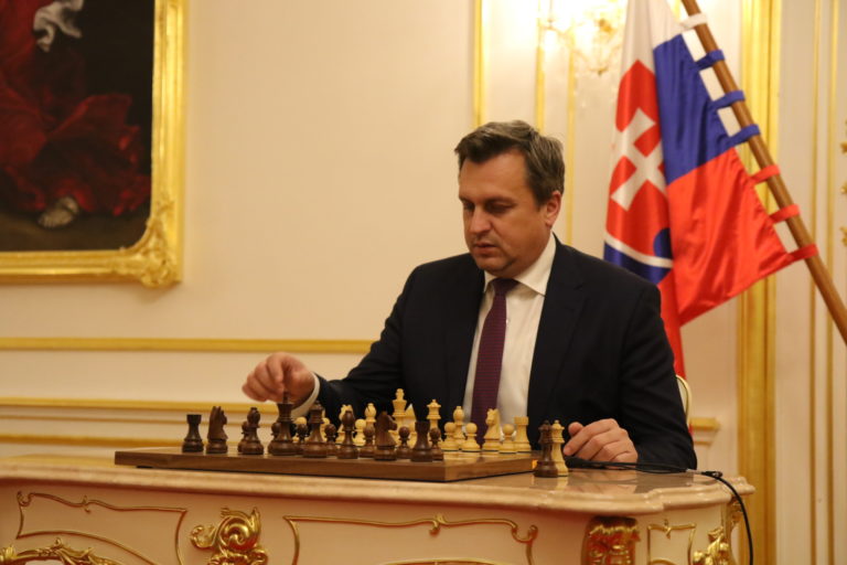 Predseda parlamentu Andrej Danko počas šachovej exhibície v reprezentačných priestoroch na Bratislavskom hrade pri príležitosti 3. ročníka vianočného šachového turnaja predsedu Národnej rady SR. Bratislava, 9. december 2019. Foto: SITA/Alexandra Čunderlíková