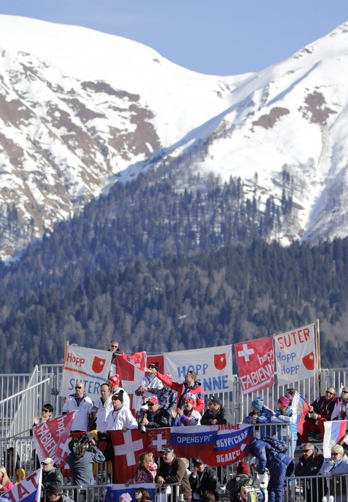 Ruská lyžiarka Maria Bedarevová v cielu stredajšieho zjazdu žien. Foto: SITA/AP