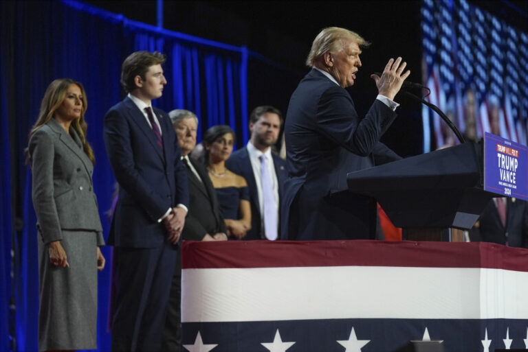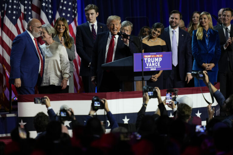 Republikánsky prezidentský kandidát Donald Trump a prvá dáma Melania Trumpová počas volebného večierka. Foto: SITA/AP
