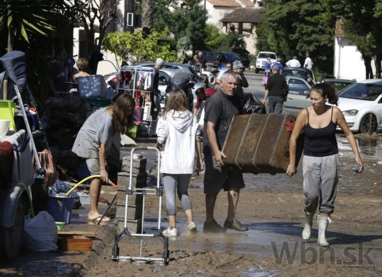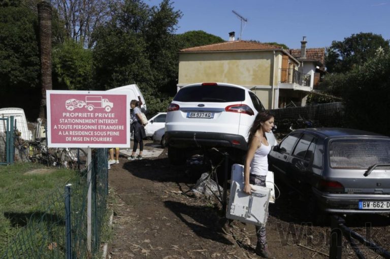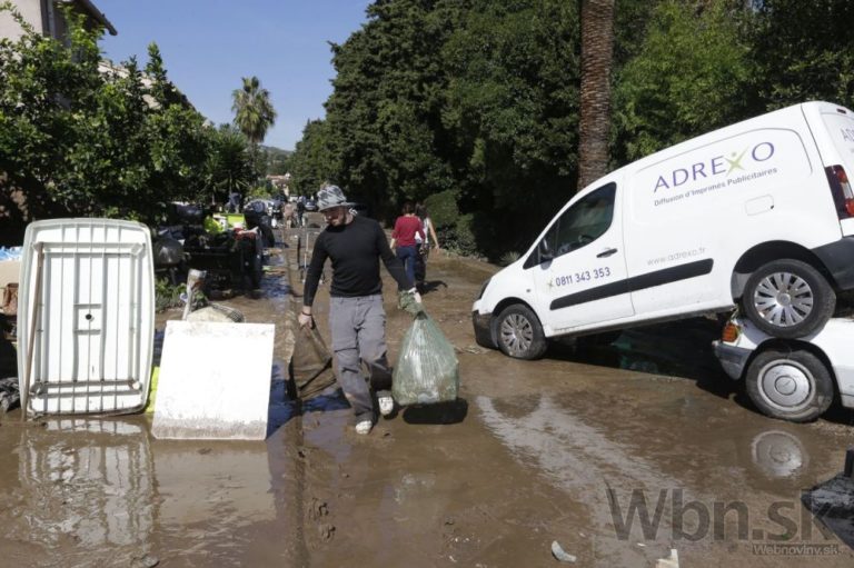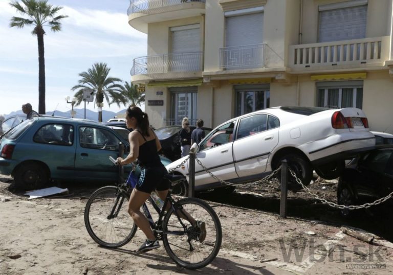 Najmenej 17 ľudí zahynulo pri povodniach na juhu Francúzska. Záplavy postihli po prudkých lejakoch najmä obce v oblasti Azúrového pobrežia. Záplavy zasiahli aj mestá Cannes a Nice, kde boli viaceré ulice neprejazdné. Známa Anglická promenáda v Nice sa ocitla pod vodou a niekoľko vozidiel, ktoré tam boli zaparkované, odnieslo do mora. Foto: SITA/AP