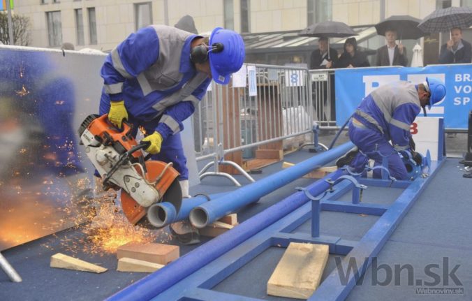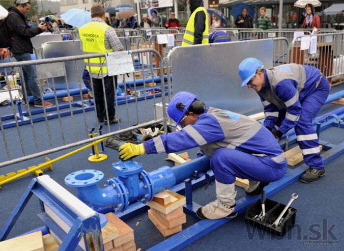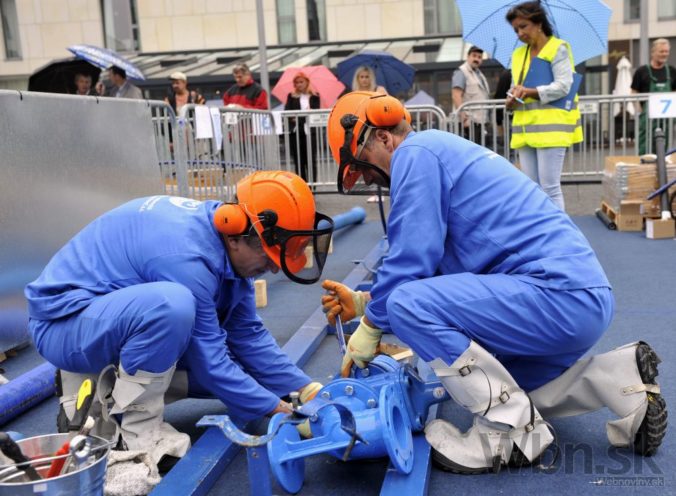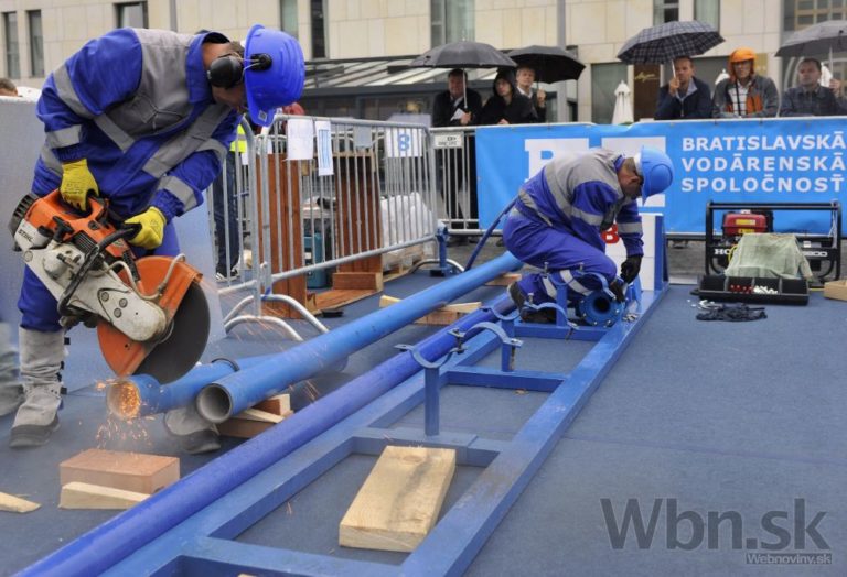 Účastníci 31. ročníka Celoslovenskej súťaže zručnosti vodárenských pracovníkov. Bratislava, 11. september 2014. Foto: SITA/Ján Slovák
