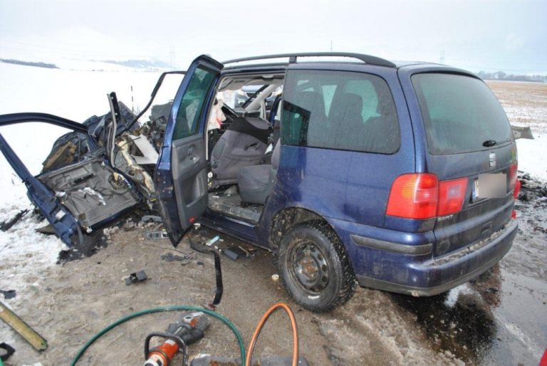 Život mladého vodiča si vyžiadala nehoda, ktorá sa stala v pondelok popoludní medzi obcami Belá-Dulice a Martin. Štyridsaťštyriročná vodiča na Seate Alhambra pred odbočkou na Necpaly prešla do protismeru a zrazila sa s Peugeotom Boxer. Dvadsaťšesťročný vodič zrážke nedokázal zabrániť, po prevoze do nemocnice zomrel. Vodička seatu sa zranila ťažko, jej sedemročná dcéra, ktorá sedela vzadu v autosedačke, utrpela ľahké poranenia. Foto: SITA/KR PZ Žilina