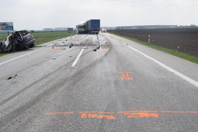 Miesto tragickej dopravnej nehody, ktorá sa stala v pondelok na poludnie pri Dolnej Strede v okrese Galanta. Na rovnej ceste sa čelne zrazil vodič Fordu Focus C-Max s protiidúcim kamiónom s návesom. Tridsaťdvaročný vodič osobného auta zrážku neprežil, šofér z nákladného auta vyviazol bez zranení, alkohol mu nezistili. Ford zaistili na znalecké skúmanie a posúdenie technického stavu. Bratislava, 12. apríl 2016.