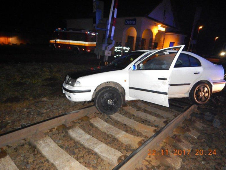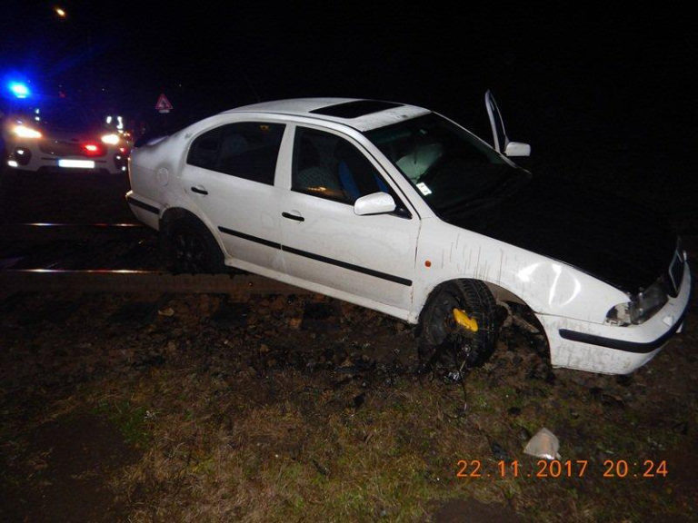 Vodič, ktorý chcel ujsť policajtom, havaroval. Tridsaťosemročného vodiča Octavie chcela zastaviť policajná hliadka v stredu podvečer v Detve. Počas naháňačky šofér nezvládol zákrutu, pred železničným priecestím zišiel z cesty, vybehol na trať a narazil do železničného zariadenia. Nikto našťastie nebol zranený, vodičovi alkohol nezistili, mal však uložený zákaz jazdiť. Muža z Tuhára obvinili z marenia výkonu úradného rozhodnutia a všeobecného ohrozenia. Detva, 23. november 2017. Foto: SITA/KR PZ Banská Bystrica.