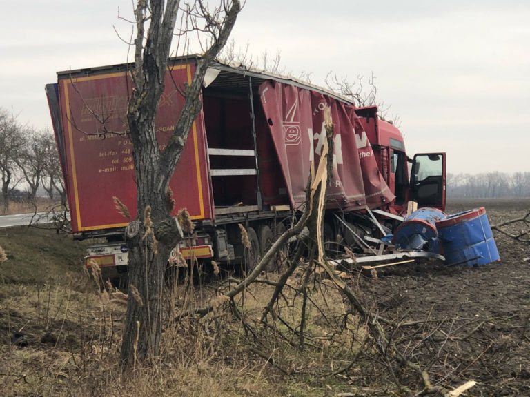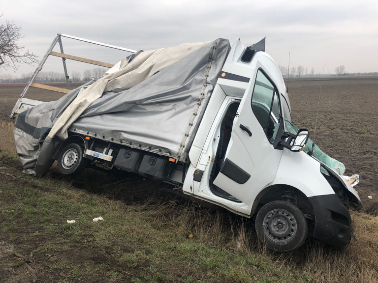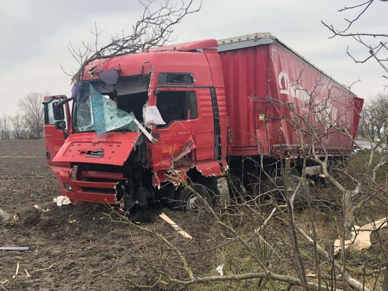 Vodič dodávky Renault Master pri Medveďove v okrese Dunajský Streda prešiel do protismeru a neprežil zrážku s poľským kamiónom. Dunajská Streda, 6. február 2018. Foto: SITA/KR PZ Trnava.