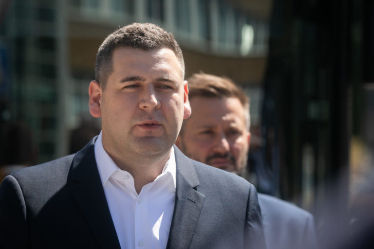 Predseda predstavenstva DPB Martin Rybanský počas brífingu, na ktorom Dopravný podnik Bratislava (DPB) predstavil flotilu plnohodnotných vodíkových autobusov na Slovensku. Bratislava, 31. júl 2023. Foto: SITA/Diana Černaková