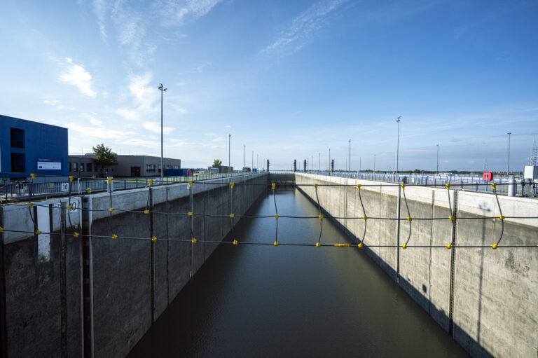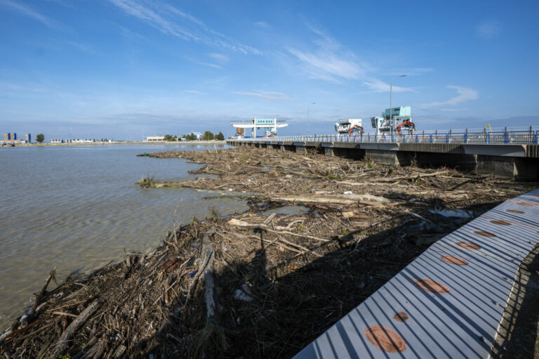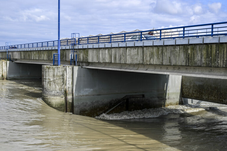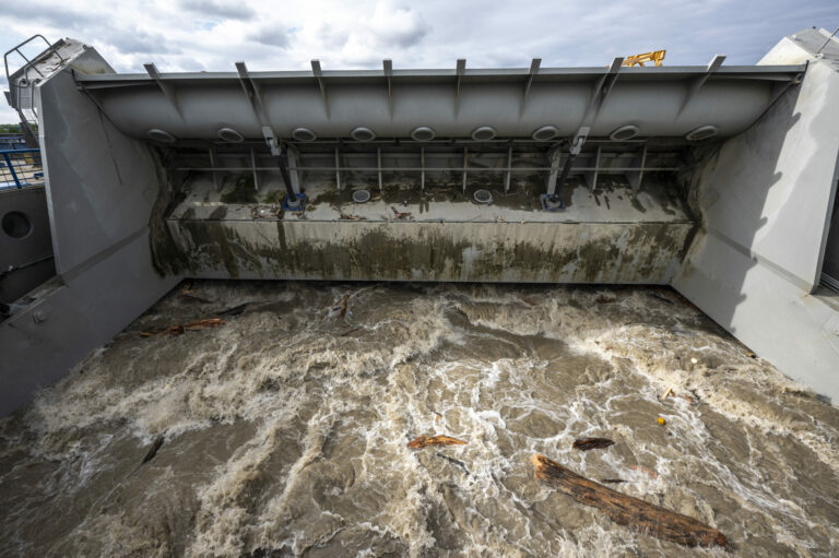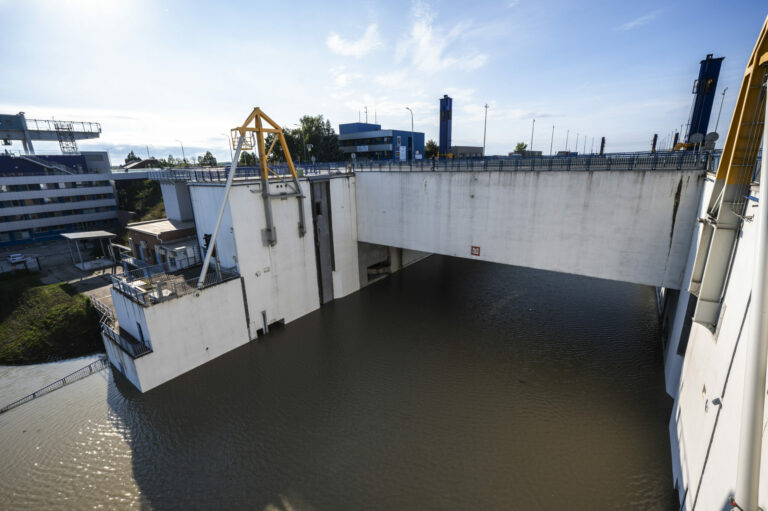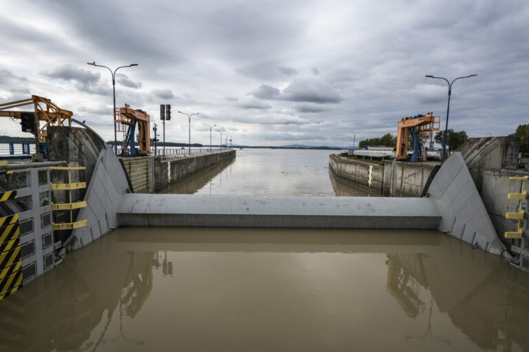 Plavebná komora VD Gabčíkovo počas zvýšenej hladiny rieky Dunaj. Gabčíkovo, 17. september 2024. Foto: SITA/Milan Illík