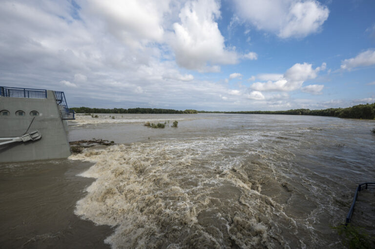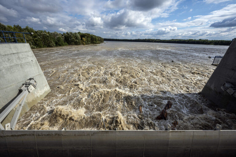 VD Gabčíkovo počas zvýšenej hladiny rieky Dunaj. Gabčíkovo, 17. september 2024. Foto: SITA/Milan Illík