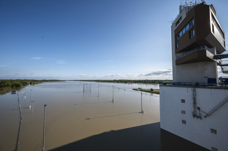 VD Gabčíkovo - stupeň Čunovo počas zvýšenej hladiny rieky Dunaj. Čunovo, 17. september 2024. Foto: SITA/Milan Illík