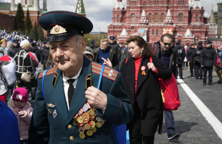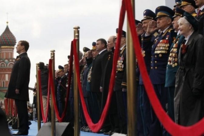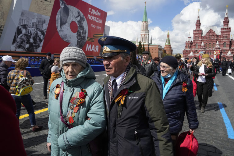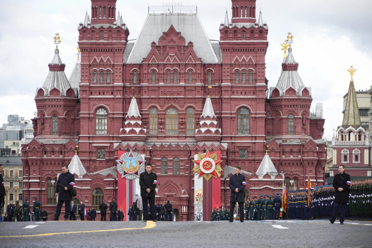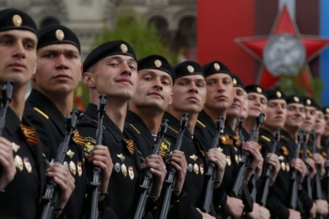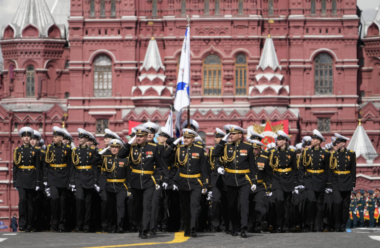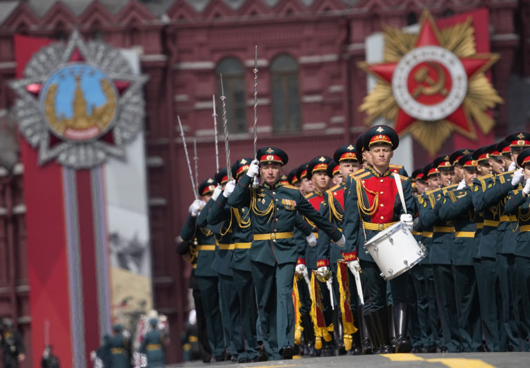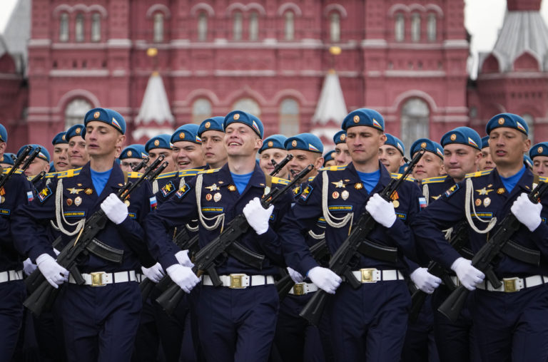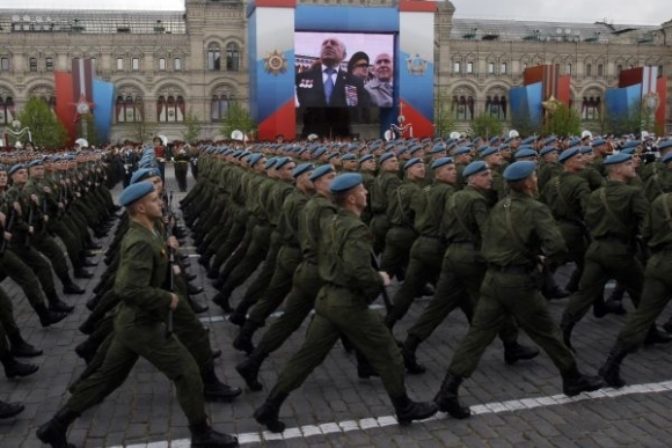 Ruskí servismani počas Dňa víťazstva na Červenom námestí. Foto: SITA/AP