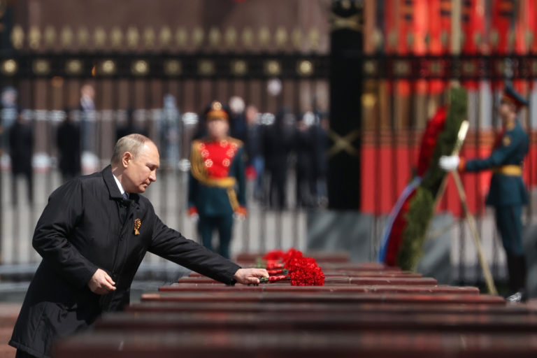 Ruský prezident Vladimir Putin sa zúčastnil na pietnom akte kladenia vencov k hrobu neznámeho vojaka. Foto: SITA/AP