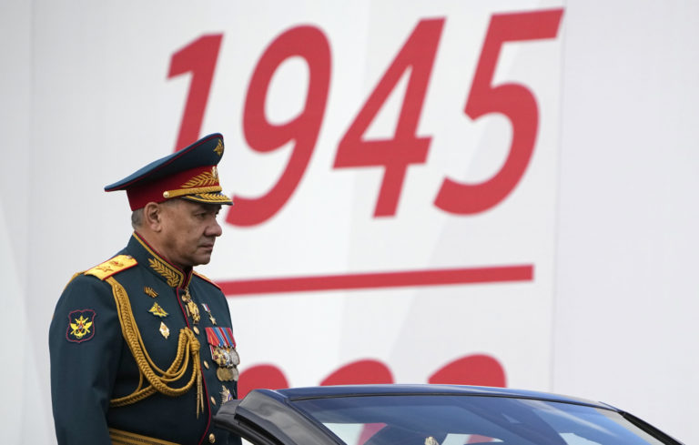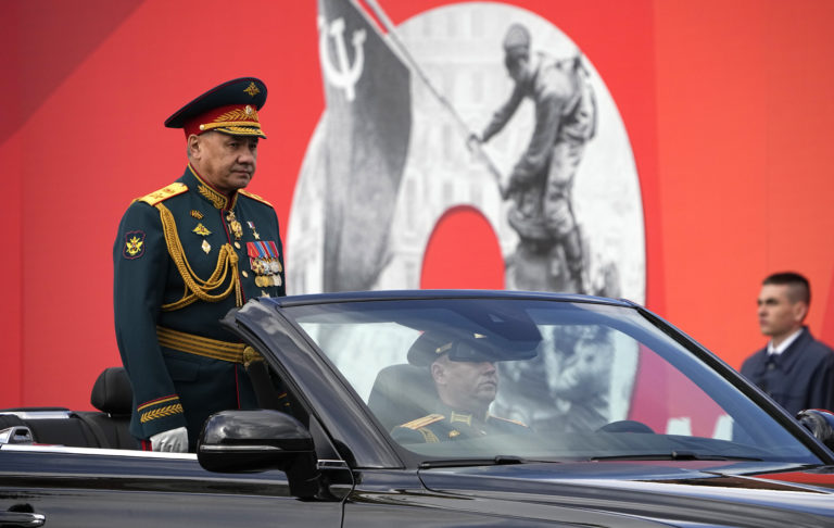Ruský minister obrany Sergej Šojgu počas vojenskej prehliadky v Moskve. Foto: SITA/AP