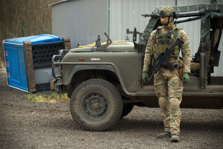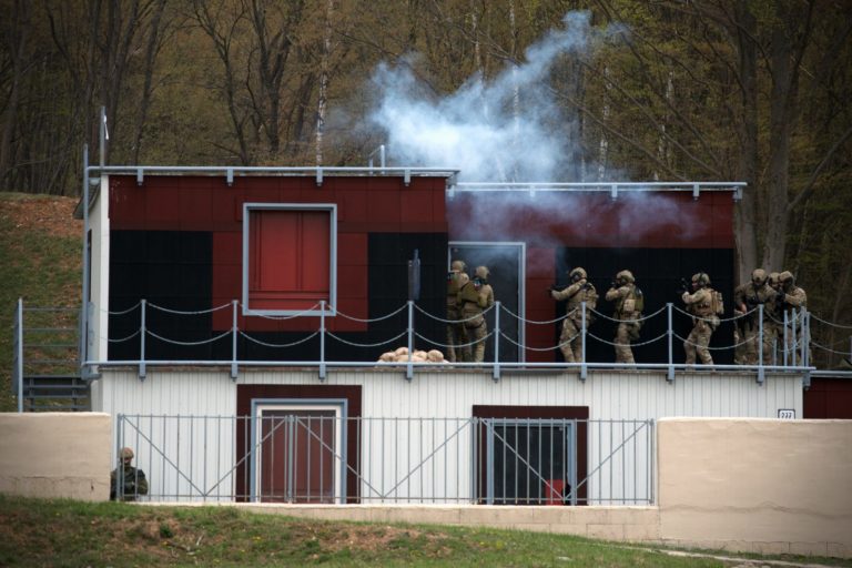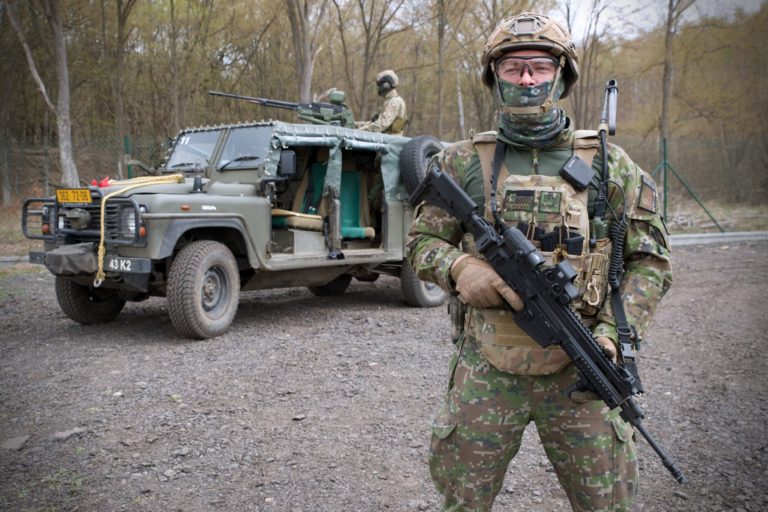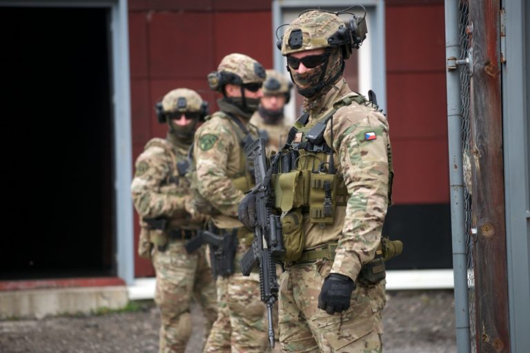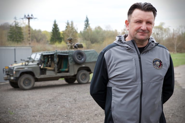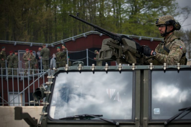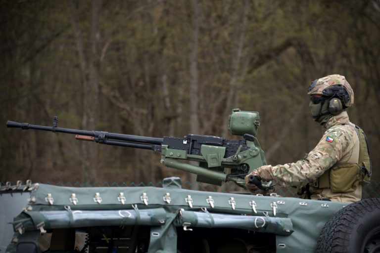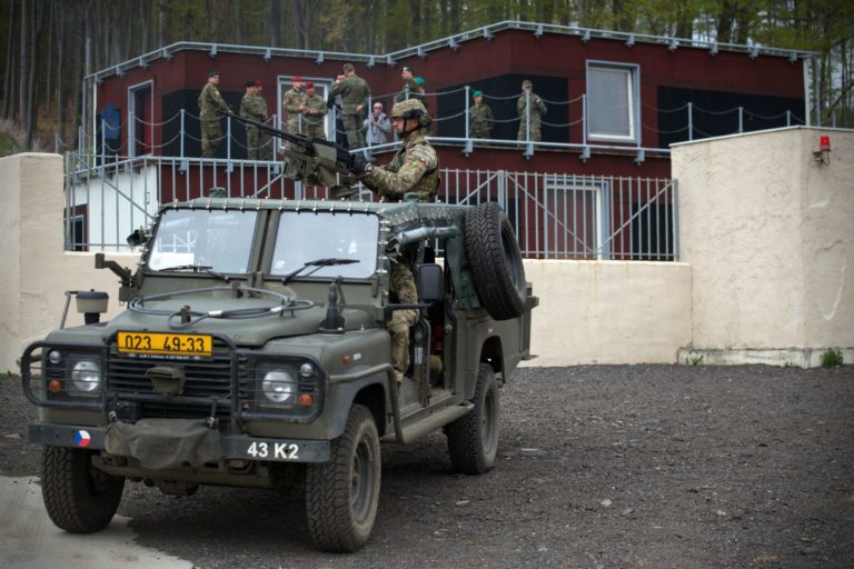 Veľvyslanec Českej republiky na Slovensku Tomáš Tuhý počas cvičenia Mnohonárodného bojového uskupenia NATO na Slovensku v Centre výcviku Lešť. Foto: SITA/Jakub Julény
