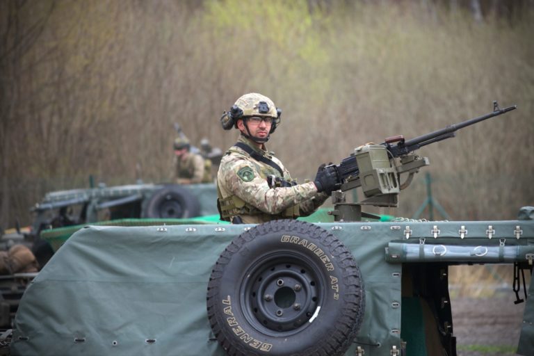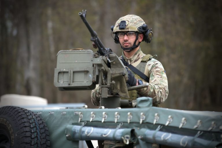 Účastník cvičenia Mnohonárodného bojového uskupenia NATO na Slovensku v Centre výcviku Lešť. Foto: SITA/Jakub Julény