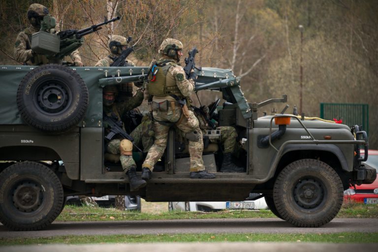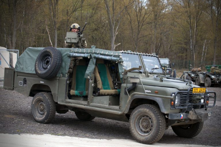 Ľahké bojové vozidlo LR 130 Kajman počas cvičenia Mnohonárodného bojového uskupenia NATO na Slovensku v Centre výcviku Lešť. Foto: SITA/Jakub Julény