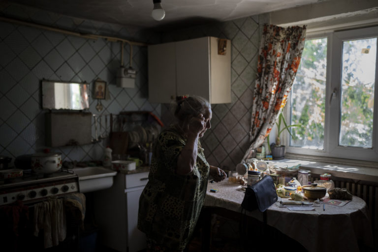 Nina Sytnikova, 76, si balí svoje veci počas okupácie v Kupjansku na Ukrajine v pondelok 14. augusta 2023. Foto: SITA/AP
