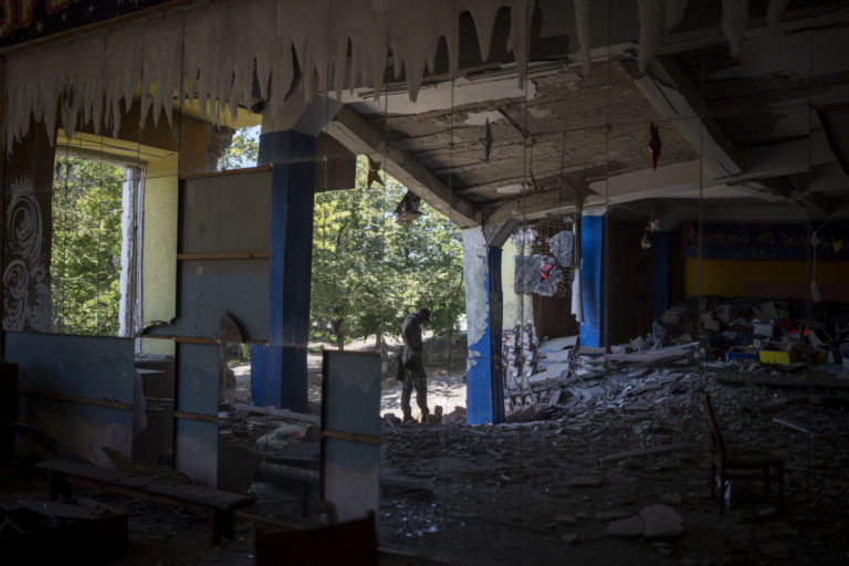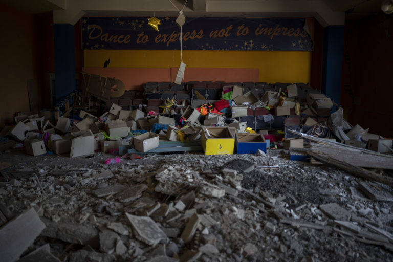 Zbombardovaná tanečná sála v Kupjansku na Ukrajine, pondelok 14. augusta 2023. Foto: SITA/AP