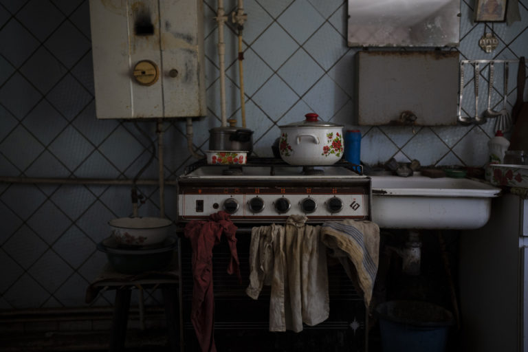 Hrnce na sporáku v kuchyni Niny Sytnikovej po jej evakuácii v Kupjansku na Ukrajine v pondelok 14. augusta 2023. Foto: SITA/AP