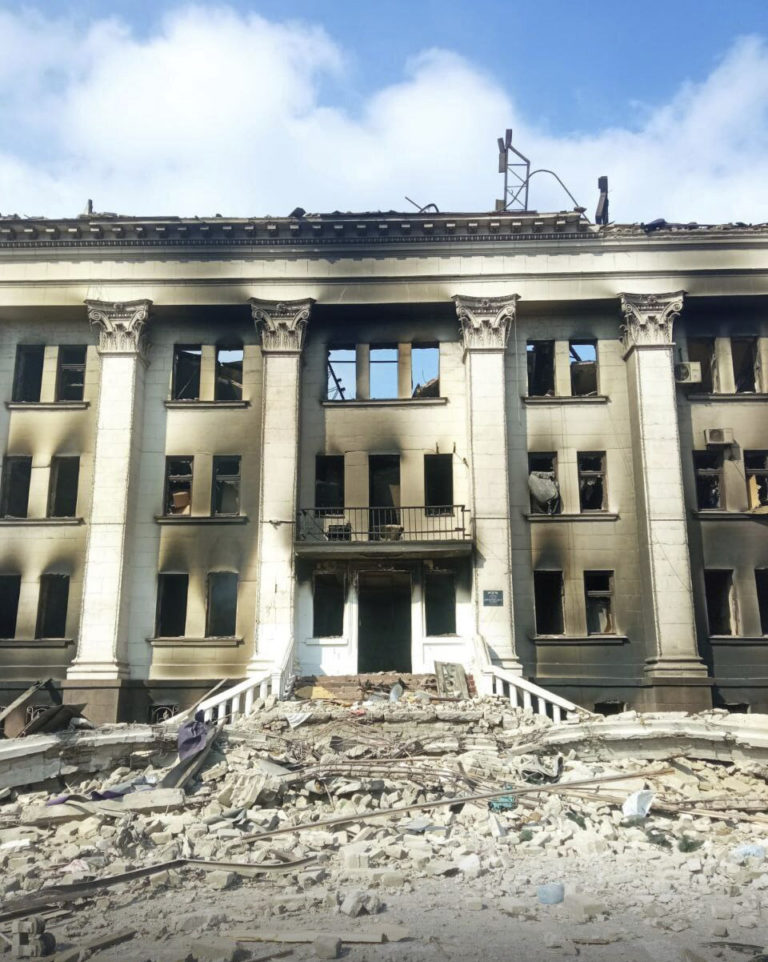 Zničené divadlo v Mariupole po ruskom útoku. Foto: twitter.com.