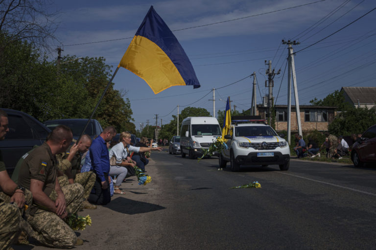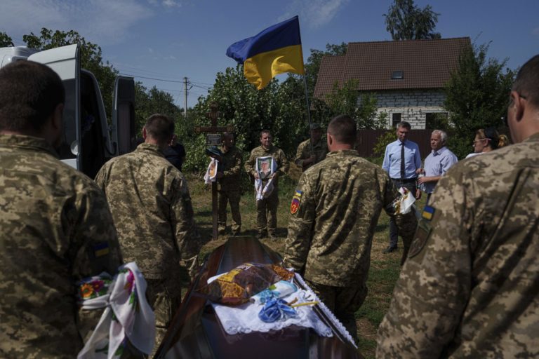 Pohrebný sprievod na Ukrajine. Štvrtok, 1. august, 2024. Foto: SITA/AP